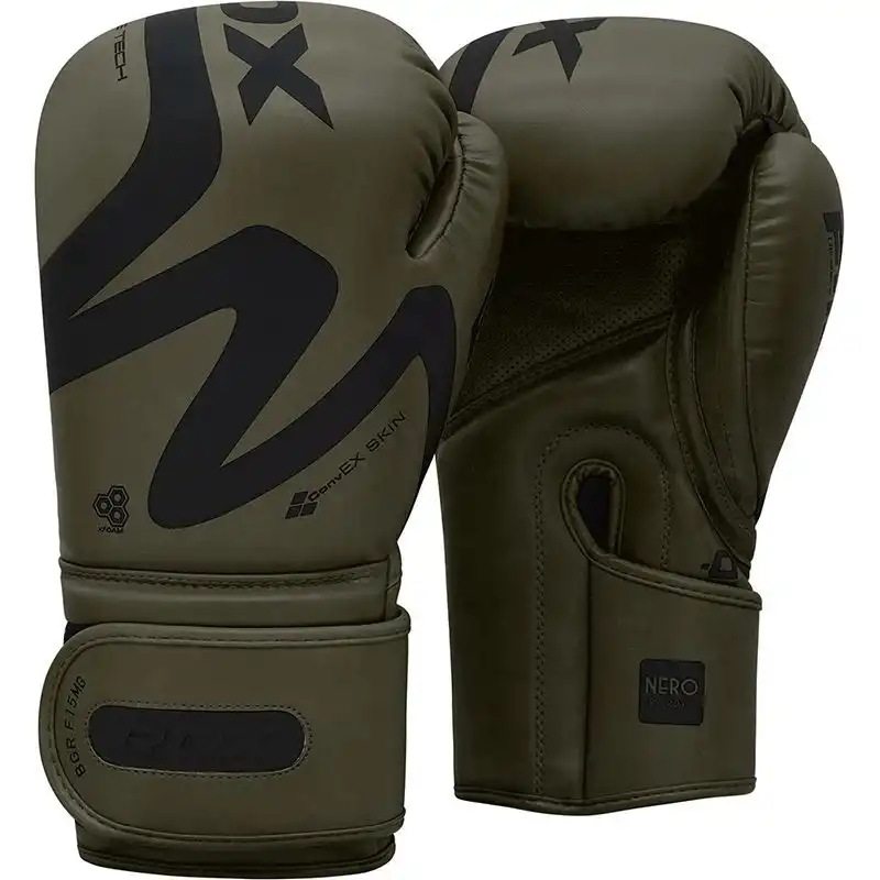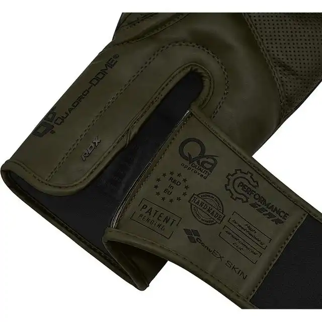 Τα RDX F15 Nero Matte Green boxing gloves προσφέρουν κορυφαία προστασία και αίσθηση πολυτέλειας σε κάθε γύρο προπόνησης ή sparring. Κατασκευασμένα με ConvEX Skin Combat Leather που αντέχει στις προκλήσεις της ισχυρής χρήσης, συνδυάζουν προηγμένη τεχνολογία padding EVA και ειδικό καλούπι Quadro-Dome ώστε η δύναμη της γροθιάς να κατανέμεται με φυσικό και ασφαλή τρόπο στο glove.