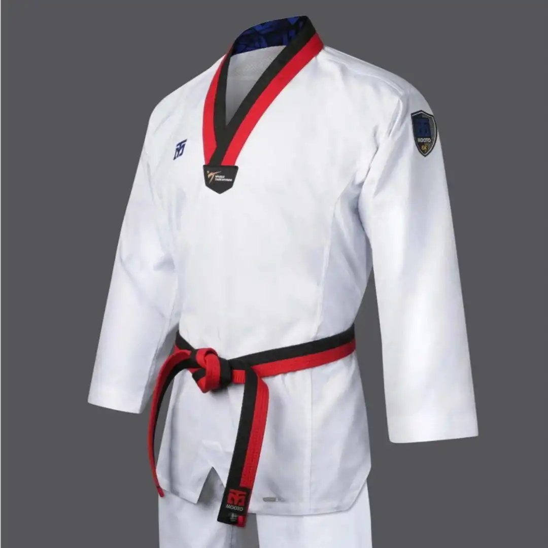 Η επαγγελματική στολή Taekwondo Mooto EXTERA 6 Sparring είναι υψηλής ποιότητας στολή που έχει εγκριθεί από την Παγκόσμια Ομοσπονδία Ταεκβοντό (WTF) και έχει σχεδιαστεί για αθλητές που αναζητούν άνεση, αντοχή και μέγιστη απόδοση κατά τη διάρκεια των προπονήσεων και των αγώνων.