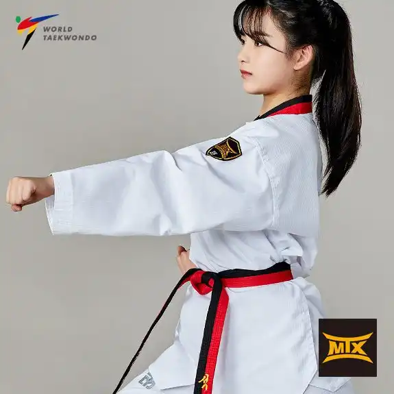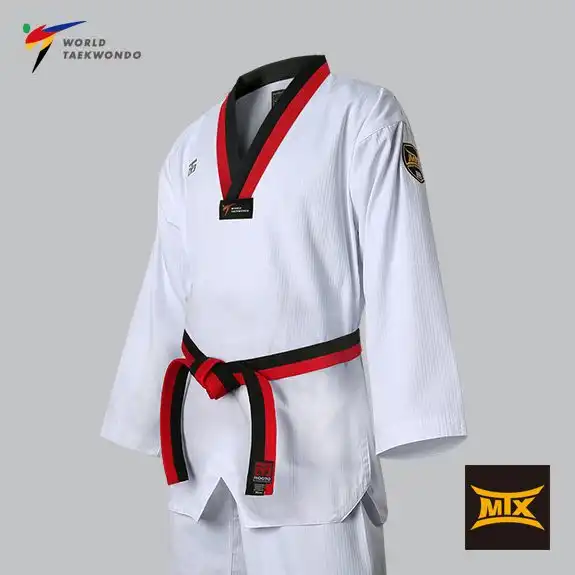 Στολή Taekwondo MTX (Mooto Exercise) WT Approved Λευκή με Μαύρο – Κόκκινο Κολάρο MO-1005